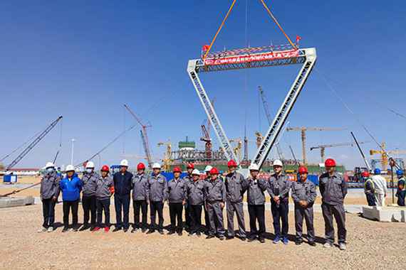 内蒙古国电电力上海庙发电公司4×1000MW燃煤机组钢结构间冷塔全部完工8月26日10时58分,随着#4钢结构间冷塔第18层最后一榀钢三角的精准就位,世界上首例4台百万机组钢结构间冷塔主体结构全部完工。 建设单位国电双维和国能集团内蒙古上海庙能源有限公司党委副书记、副总经理朱雷,监理单位山东诚信工程建设监理有限公司副总监韩卫东,总包…